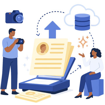 Upload images or scans of paper guest cards to automatically import them into your database using OCR and Smart AI technology. Save time by avoiding manual data entry!